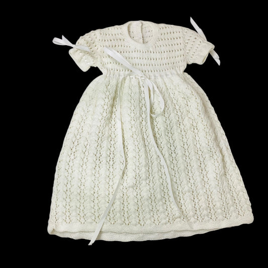 Vintage Infant Baby Dress Hand Crochet Knit White Ribbon Detail