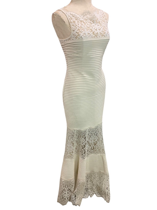 XS Tadashi Shoji Pintuck Lace Gown Ivory Boatneck Romantic