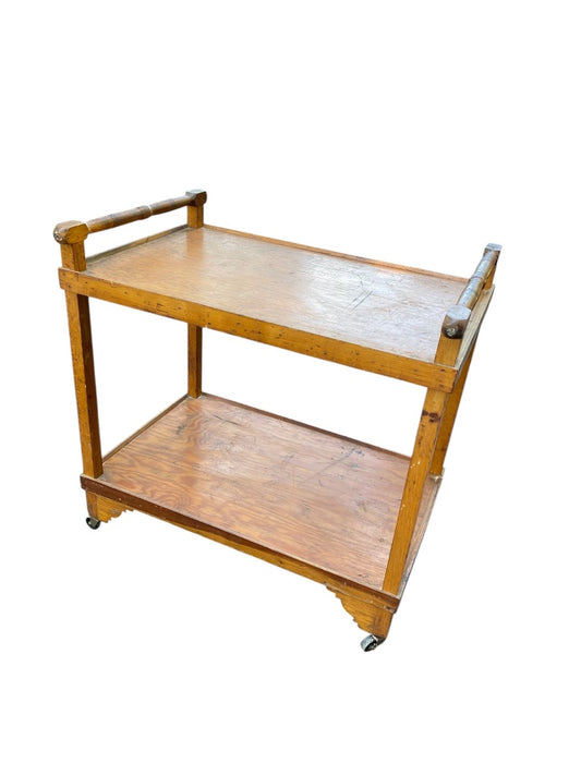Oak Rolling Wooden Bar Cart Vintage 2 Shelves Garden Kitchen