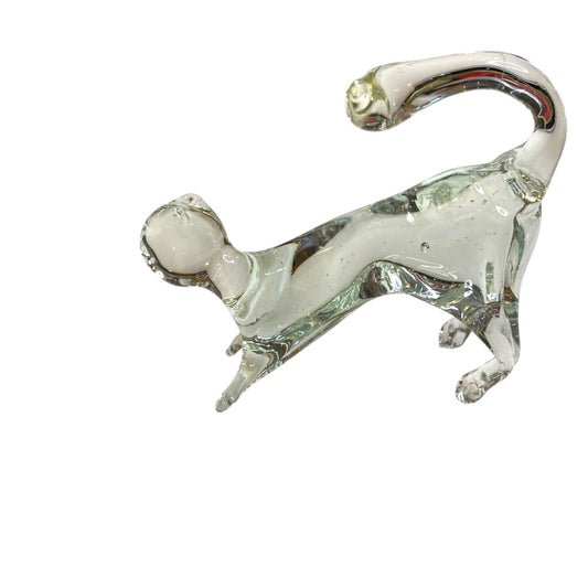 Handblown Glass Clear Cat Stretching 3.5"h x 4.25"l