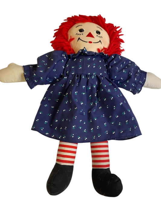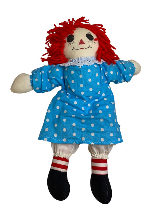 Vintage Raggedy Ann Rag Doll Blue Polka Dot Dress 15" Handmade