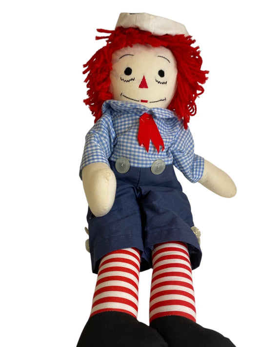 Vintage Raggedy Andy Rag Doll 25 Inch Handmade Embroidered Face