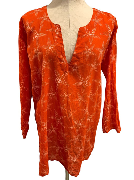 Large/XL Paths of the Spirit Womens Bathing Coverup Orange Starfish Sheer