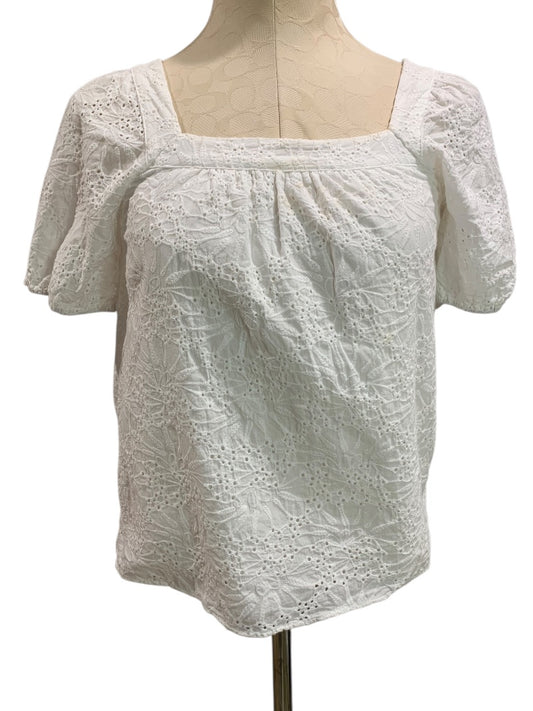 XXSP Loft Petites Womens White Eyelet Lined Pullover Blouse Square Neck