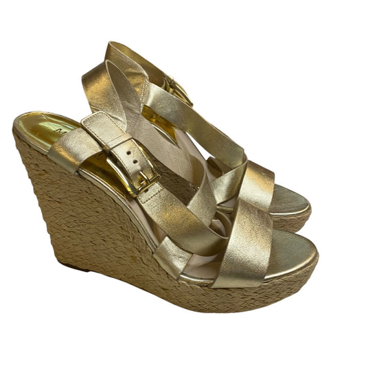 10 Michael Kors Giovanna Gold Strappy Wedge Sandals Metallic 5" Espadrilles