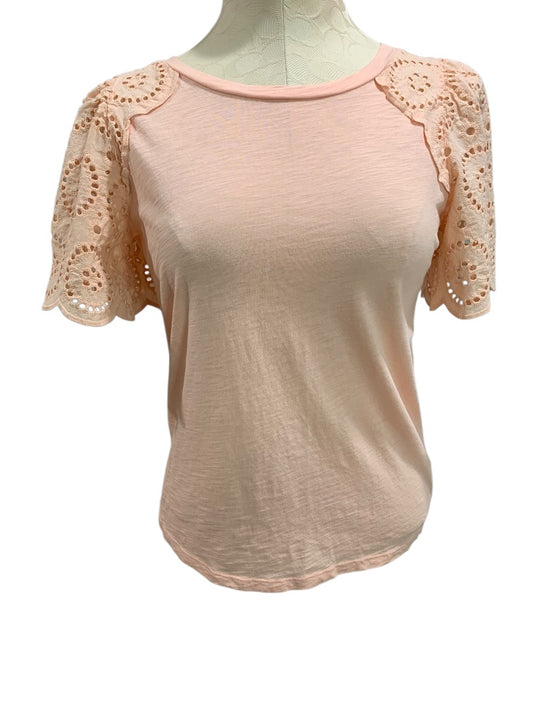 XS Loft Womens Peach Eyelet Sleeve Tshirt Round Neck