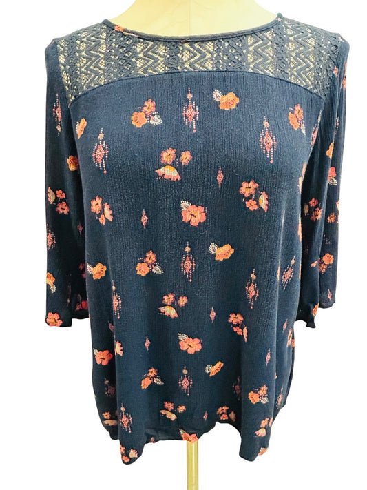 Size 18.5 Mudd Girls Boho Navy Blue Pink Print Blouse Shirt Lace
