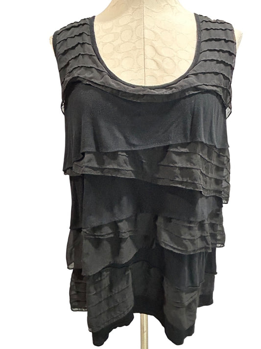 2X Cable & Gauge Woman Black Pullover Dressy Tank Shirt Sleeveless Ruffle