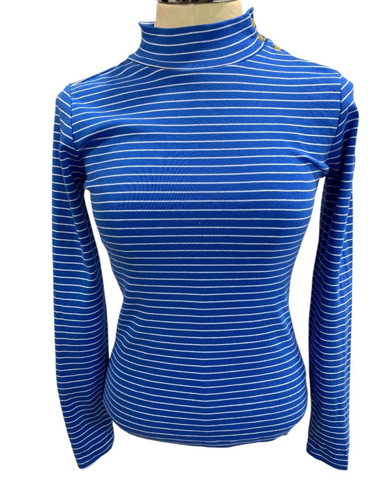 XS J.Crew Womens Blue Mockneck Striped Shirt Long Sleeve BS214