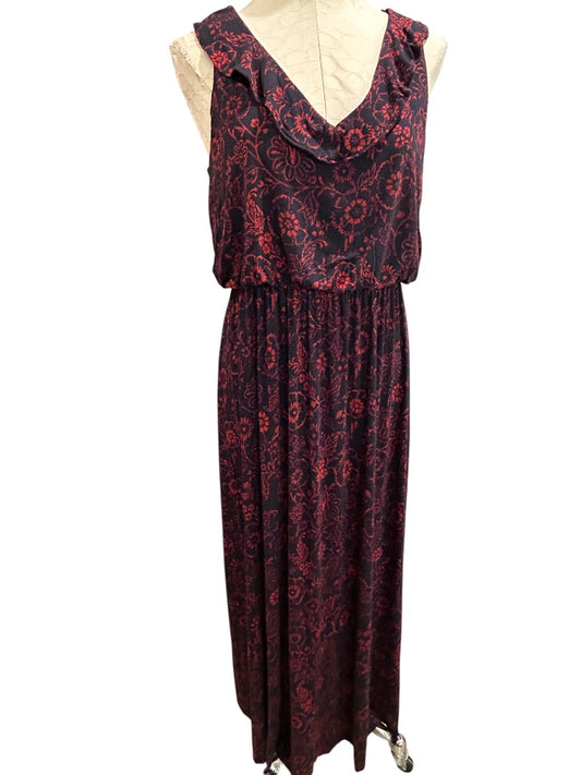Medium Loft Navy Blue Red Floral V-Neck Tie Back Maxi Dress Soft Knit