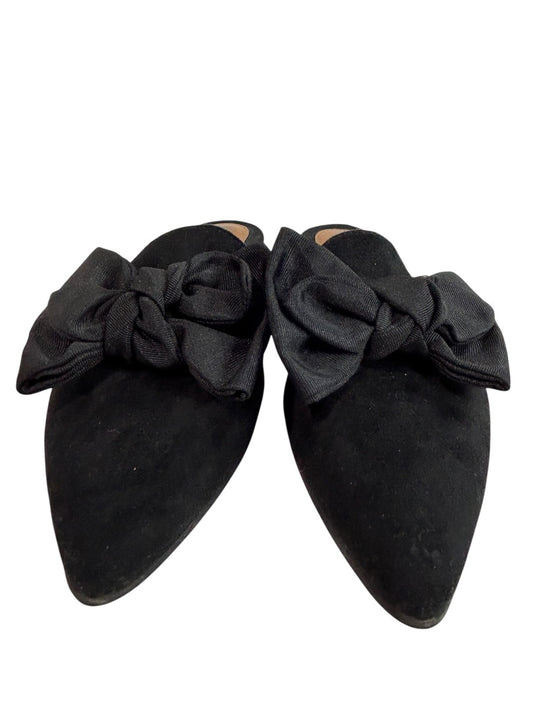 Size 7.5 Womens Faux Suede Black Slip On Shoes Grosgrain Bow Flats