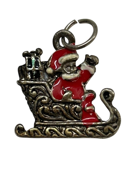 Goldtone Small Pendant Charm Santa Sleigh Christmas .75"