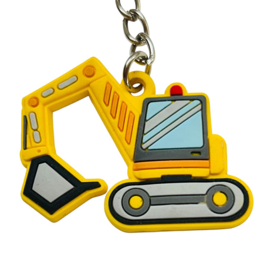 Backhoe Digger PVC Keychain Keyring 3.25" Yellow