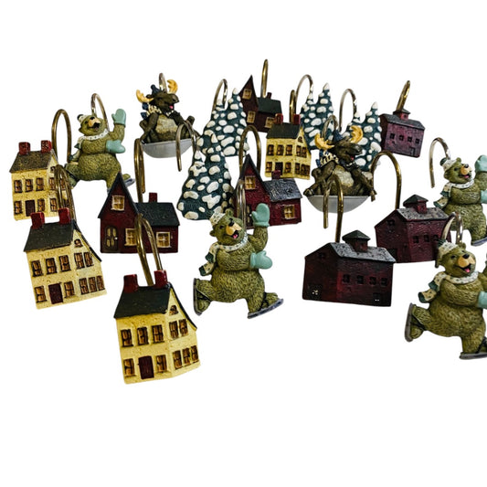 Set of 20 Holiday Winter Shower Curtain Hooks Bear Barn Tree Snow