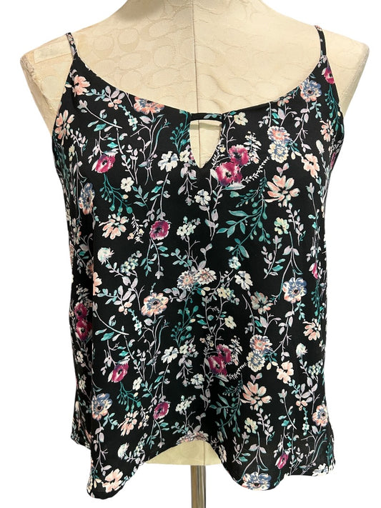 Small Lush Womens Navy Blue Floral Print Sleeveless Blouse Keyhole Neckline