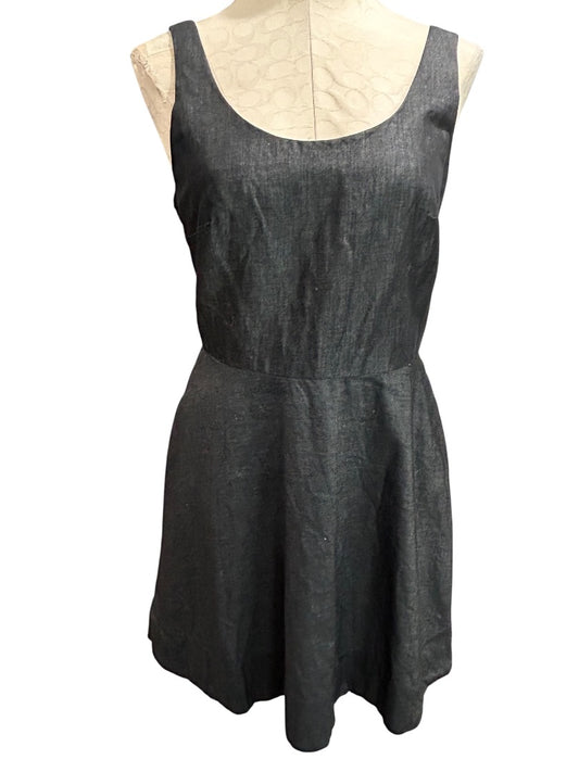Size 8 Gap Black Denim Sleeveless Dress A-Line Jean Pockets Linen Blend