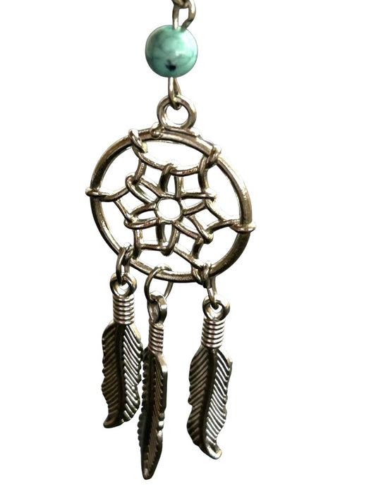 Silvertone Faux Turquoise Dream Catcher Keychain Keyring 4.5"