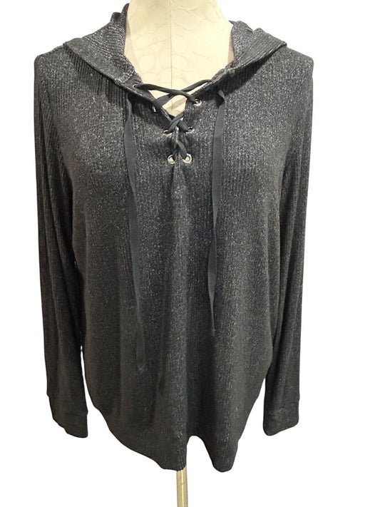 Large Market & Spruce Pullover Hoodie Soft Knit Lace Up Neckline Charcoal