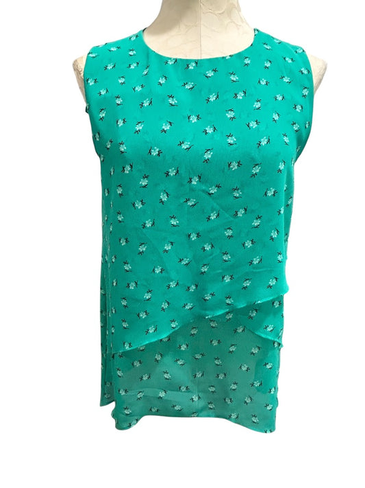 Small Chaus New York Womens Sheer Tiered Sleeveless Blouse Shirt Green Floral