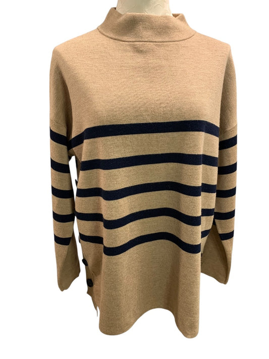 Size 42 Basler Womens Tunic Sweater Brown Black Stripe Mock Turtleneck