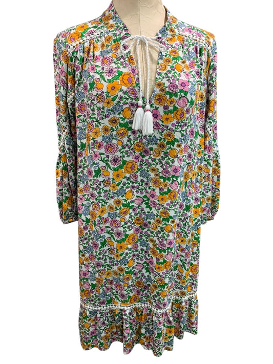 Large Crown & Ivy Long Sleeve Boho Shift Dress Floral Print Soft