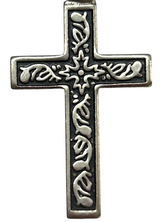 Silvertone Black Ornate Pendant Cross Religious 1.2"