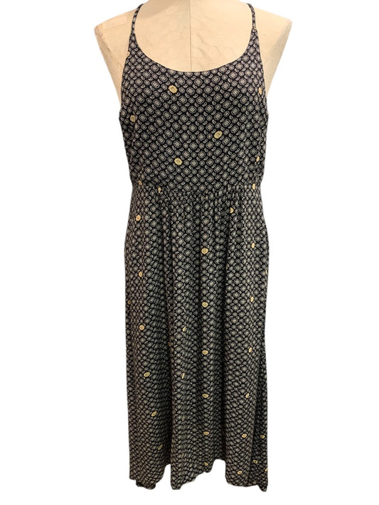 Large Roxy Maxi Dress Side Zip Black Tan Boho Print
