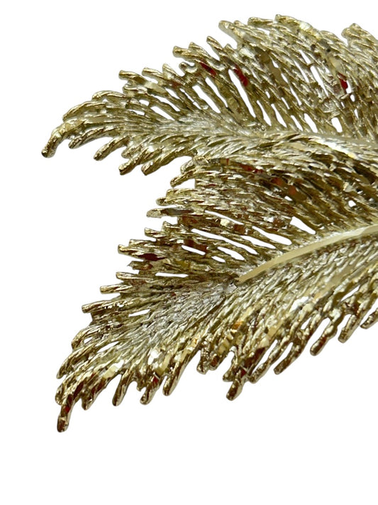 Light Goldtone 2 Leaf Brooch Statement 2.75" Pin