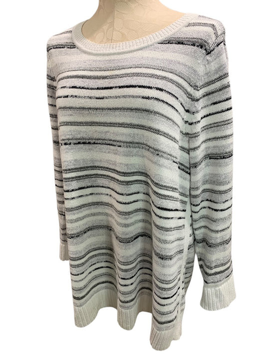 1X T by Talbots Womens Striped Gray Pullover Sweater Cotton Blend