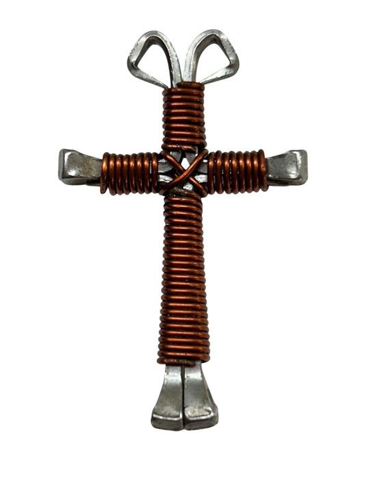 Silvertone and Copper Color Wrapped Cross Pendant Funky 1.75"