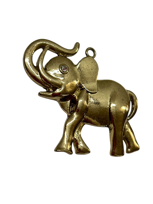 Vintage Goldtone Pendant Rhinestone Eye Trunk Up Lucky 1.75" x 1.5"