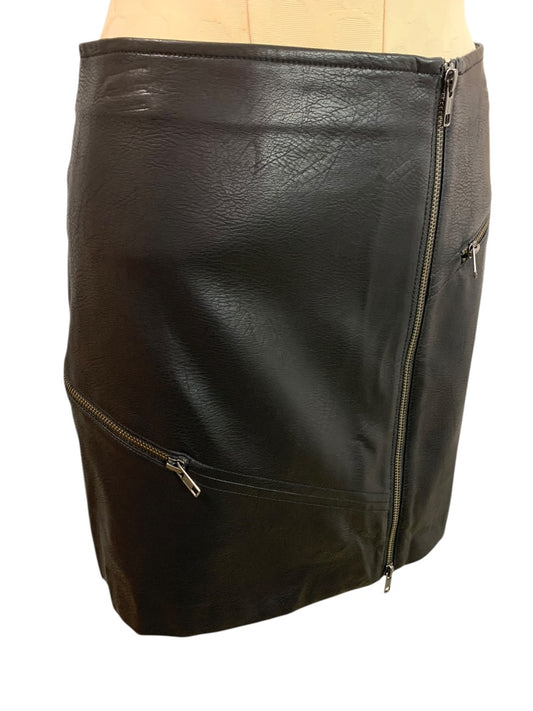 Small Leith Black Moto Style Vegan Leather Mini Skirt 15" Length