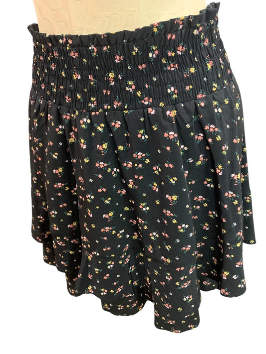 Medium Socialite Mini Skirt Black Floral Tiered Pull On