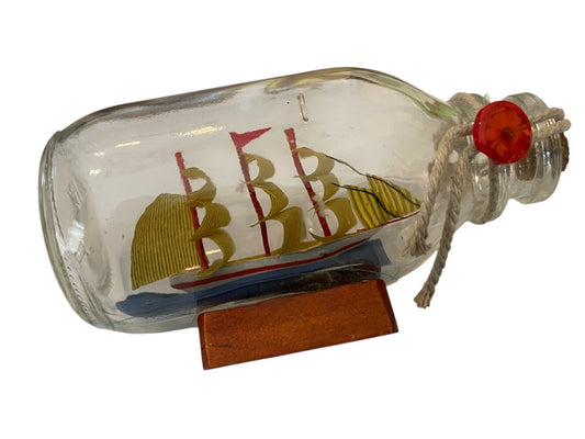 Vintage Ship In the Bottle Small Nautical Model of Tall Sail Ship 4 1/2" x 2 1/2"