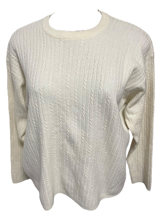 Large Rena Rowan Saville Wool Blend Womens Vintage Sweater Cream Cable Knit
