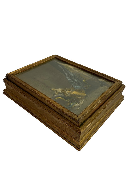 Antique Wooden Dresser Box Mirrored Lid Le Boudoir 9.5" x 7.5"