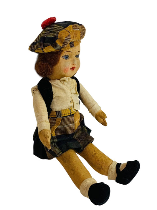 Vintage Chad Valley Cloth Doll 12 Inch Scottish Girl Made in England