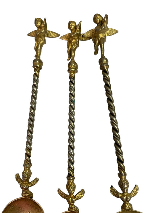 Vintage Cherub & Horse Spoons Set of 6 Ornate 5" Goldtone Demitasse Decor