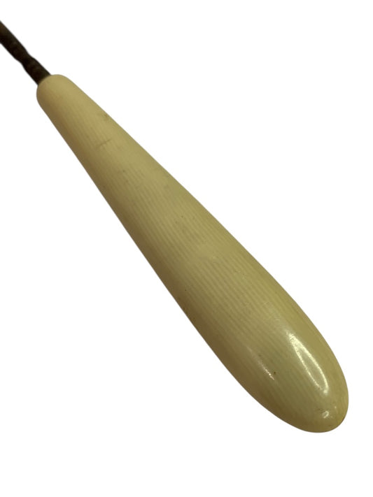 Vintage Enamel Button Hook Antique Boot Glove Fastener Yellow Handle 7 Inch