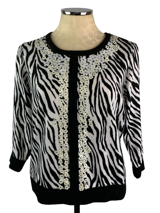 Large Petite C.D. Petites Women's Zebra Print Sweater Embellished Pullover