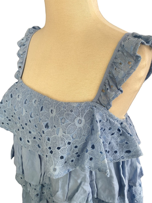 Medium J by JOA Blue Ruffled Sleeveless Blouse Eyelet Layered