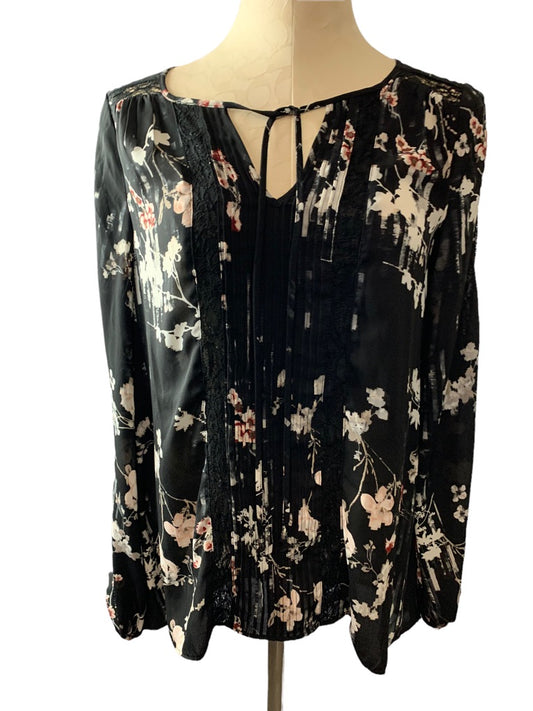 4 White House Black Market Peasant Blouse Oversize Sheer Tunic Black Floral