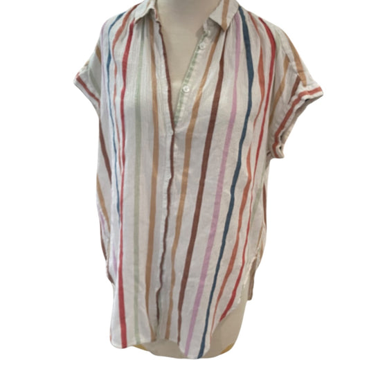 Small Madewell Womens Cotton Gauze Tunic Button Up Short Dolman Sleeve Shirt