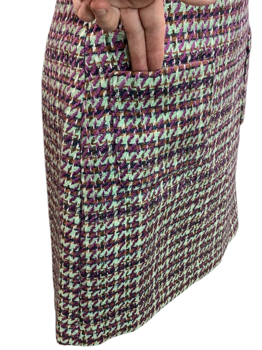 Size 2 Loft New Tweed Skirt Metallic Threading Pockets Side Zip Purple Green Brown