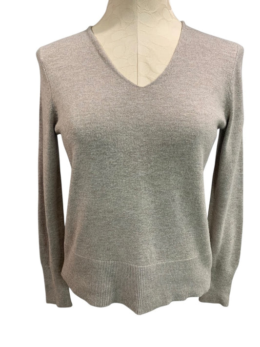 Small Petite Loft Womens Tan Lightweight Sweater V-Neck