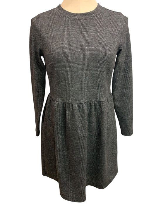 Small Petite Loft Gray Plaid Heavy Knit Long Sleeve Dress Button Back