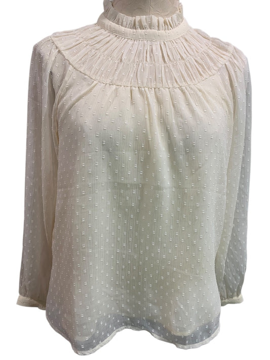 Small Petite Loft Ivory Womens Blouse Flowy Long Sleeve Lined Shirt Sheer Sleeve
