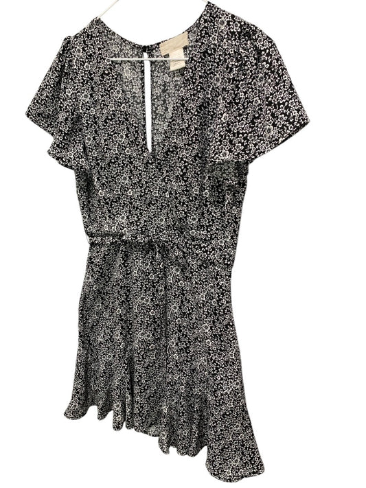 Small Altar'd State Black White Floral Dress Faux Wrap Short Sleeve
