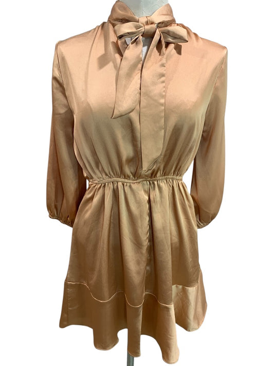 Small Vici Womens Satin Long Sleeve Dress Banded Waist Goldy Orange Color