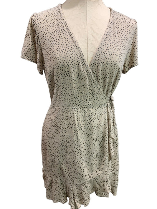 Medium Abercrombie & Fitch Wrap Dress Tan Gray Polka Dot Lined